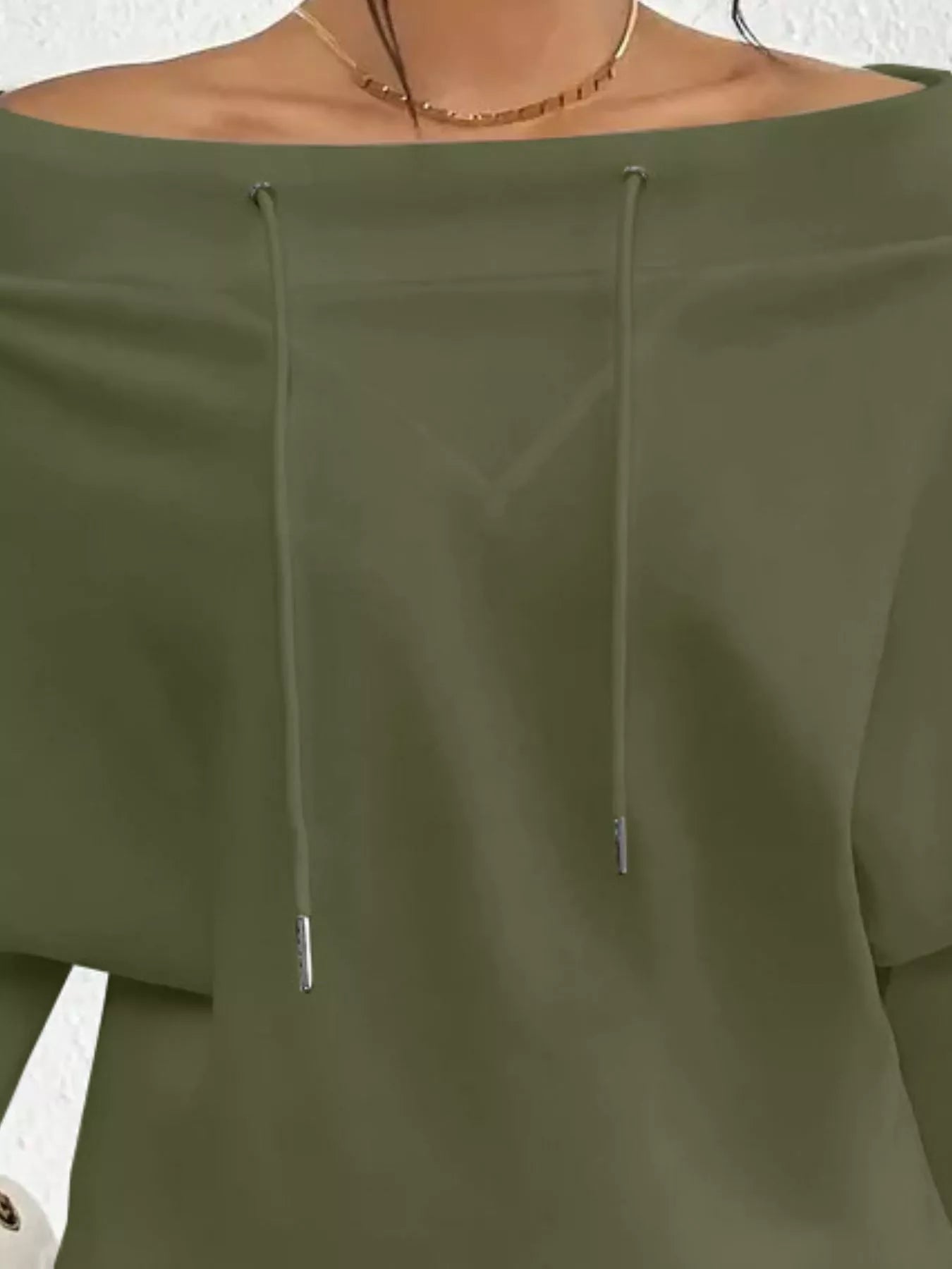 Full Size Off-Shoulder Drawstring Long Sleeve Top Plus Size